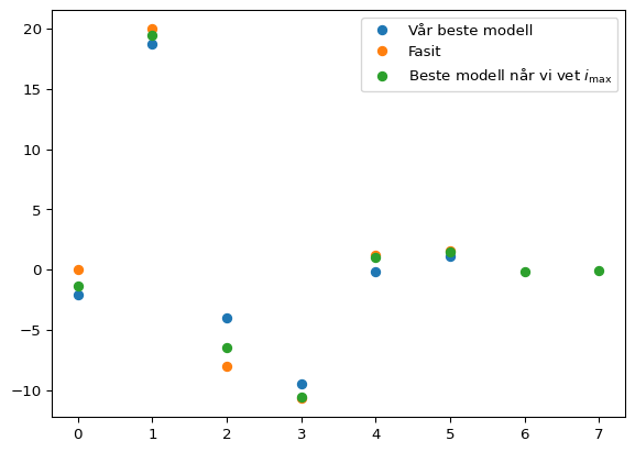 Beste modell når vi kjenner $i_{max}$: [ -0.03446598 -0.13178075 1.50576443 0.99185812 -10.53909373